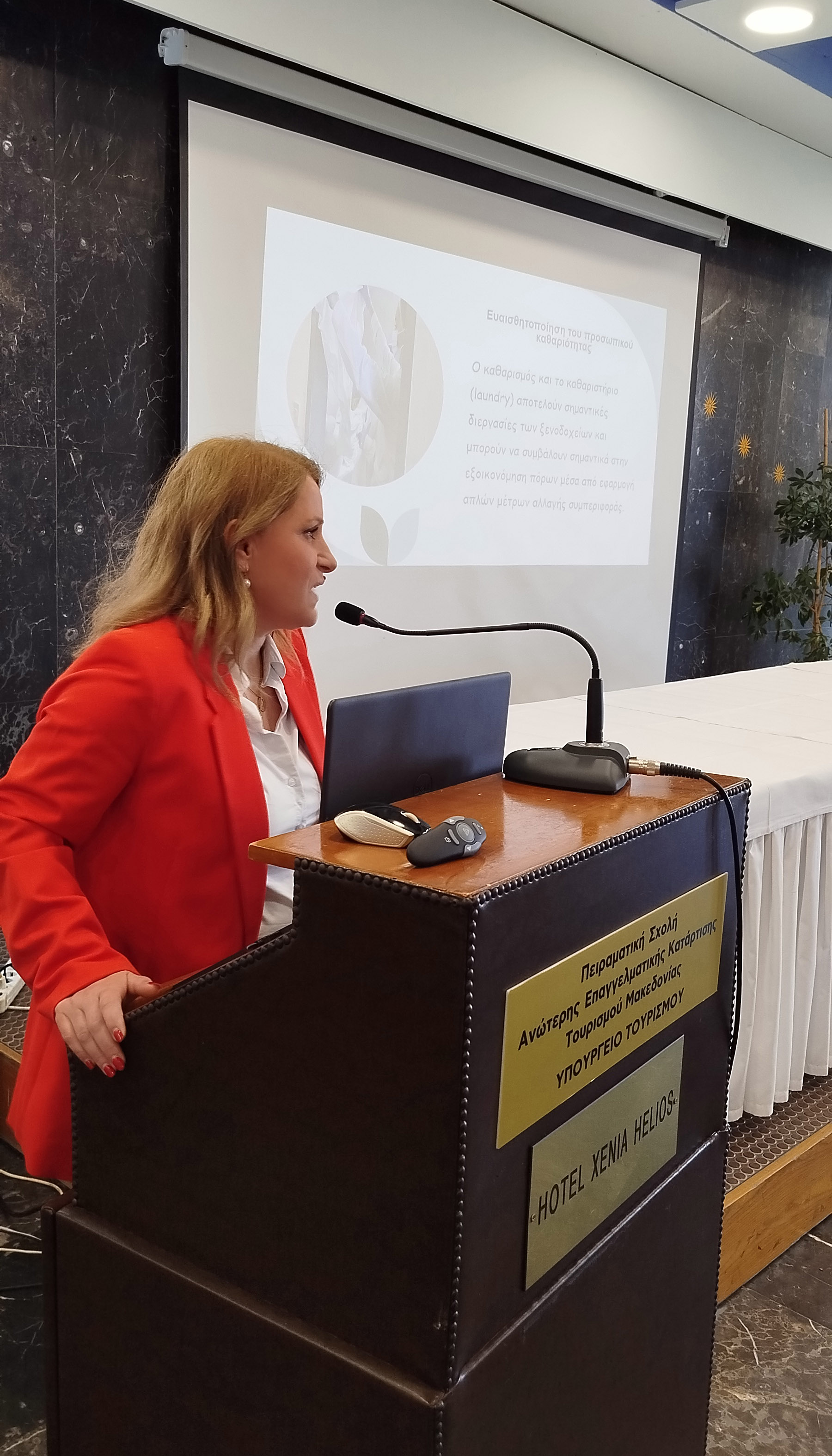 Ακολούθησε παρουσίαση από την κα. Βάσω Ράπτη, εκπαιδευτικό τουρισμού, με θέμα τον βιώσιμο τουρισμό και τον ρόλο των εργαζομένων στην πράσινη ανάπτυξη.