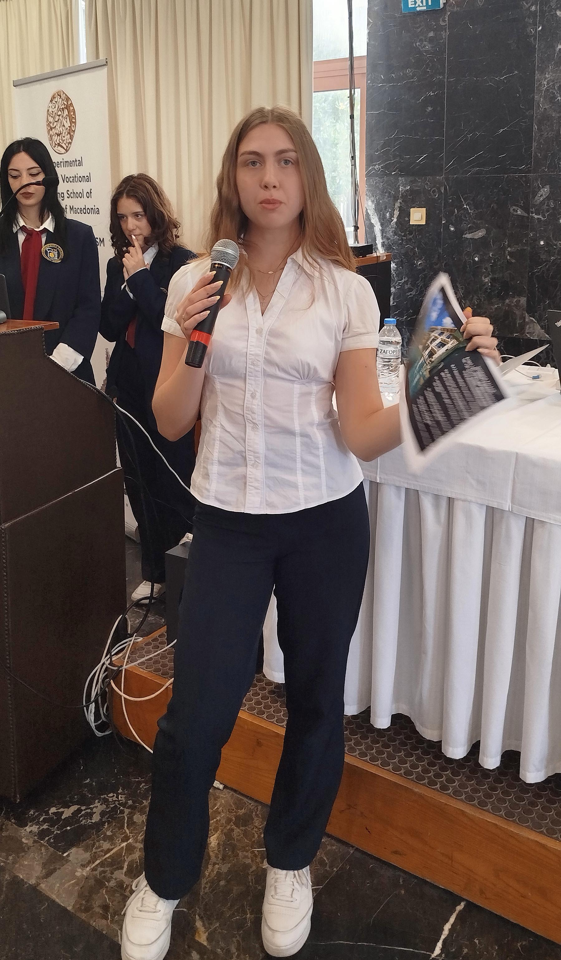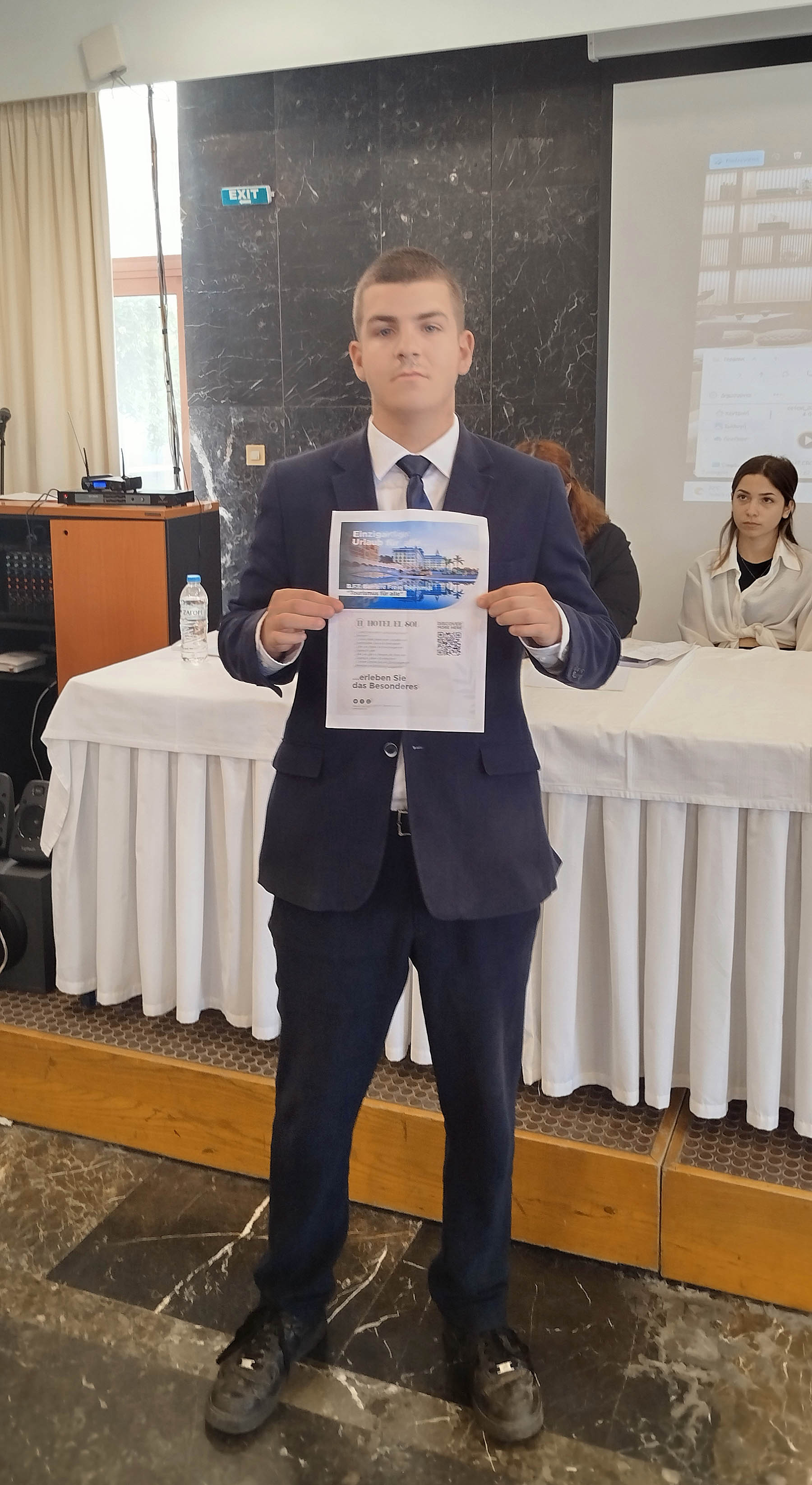 Η παρουσίαση εμπλουτίστηκε με QR codes, υπότιτλους, και ένα θεατρικό με αναφορά σε τουρίστες που ρωτούν για τις παροχές ενός εικονικού ξενοδοχείου για άτομα με ιδιαίτερες ικανότητες – μια παράσταση γεμάτη χιούμορ, φαντασία και εκπαιδευτικό περιεχόμενο, που απέδειξε την εξοικείωση των σπουδαστών και σπουδαστριών της Σχολής με την Γερμανική γλώσσα.