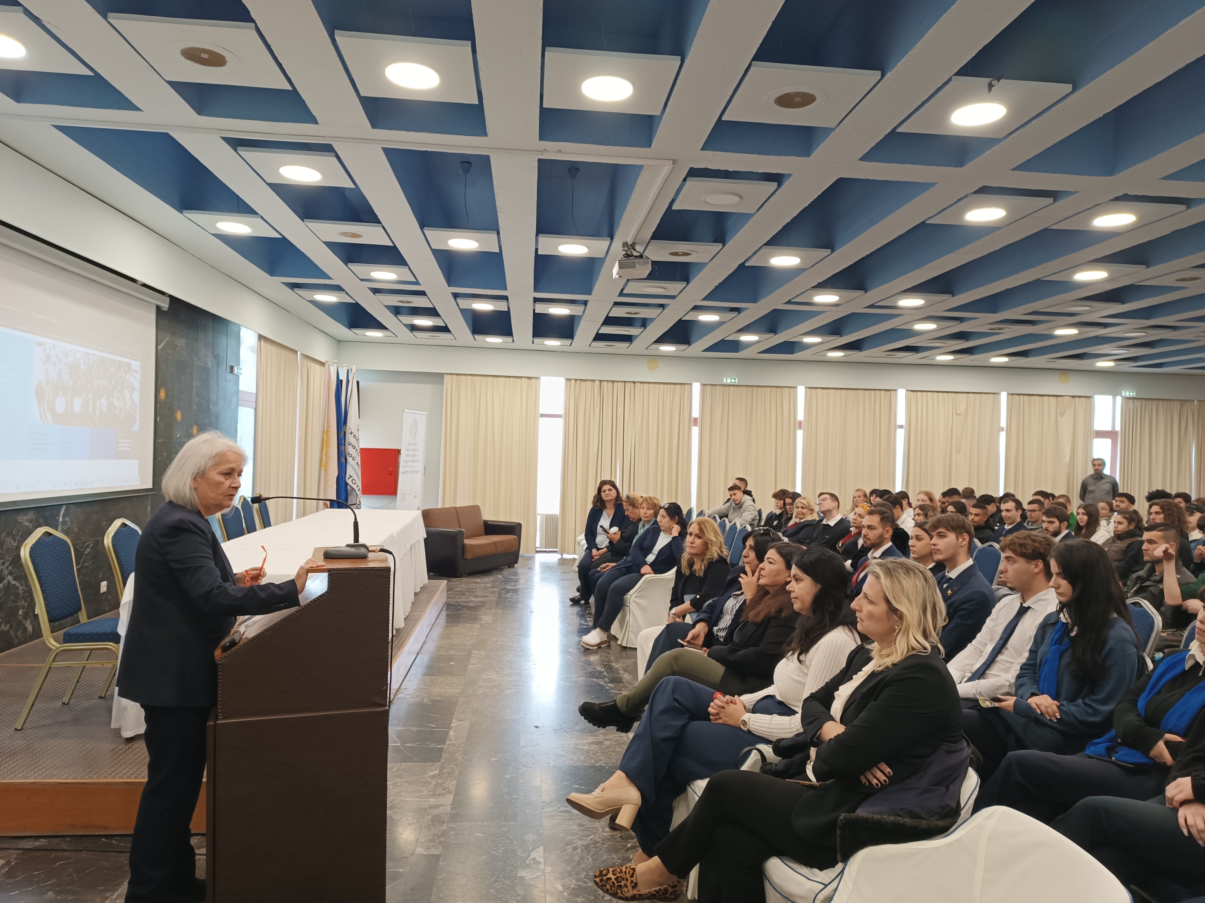Την απονομή πραγματοποίησε η Διευθύντρια της Σχολής, κα Ξένη Γερνά, η οποία στον χαιρετισμό της υπογράμμισε ότι: